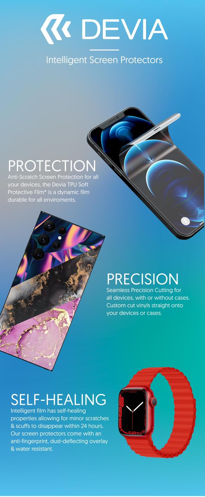 Our protectors have self-healing agents in them so even the little scuff or scratches will dissapear within 24 hours, they also have anti-fingerprint, dust deflection and has water resistance!